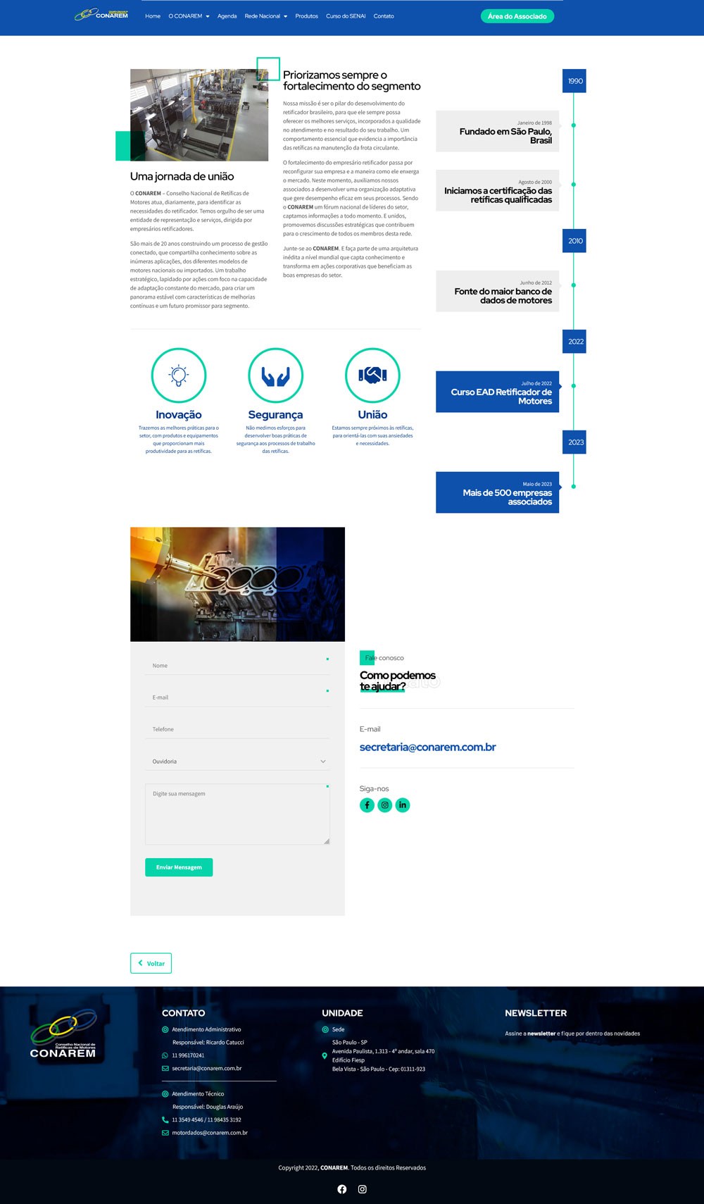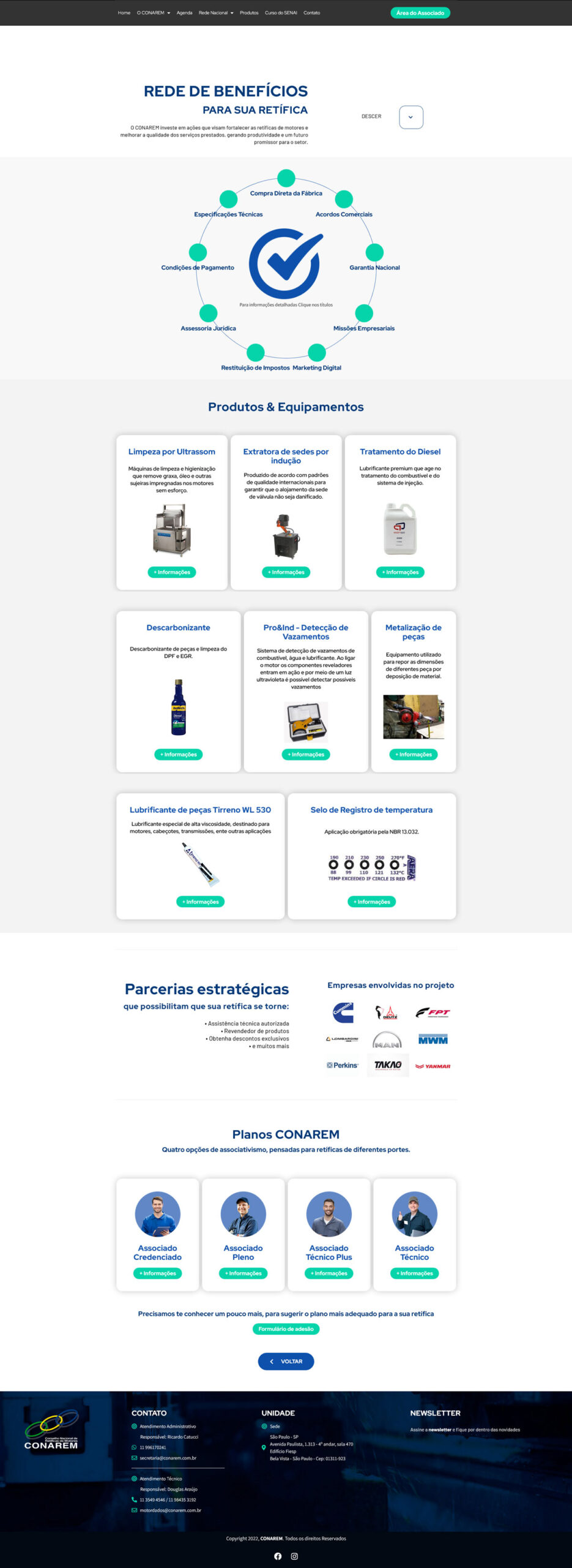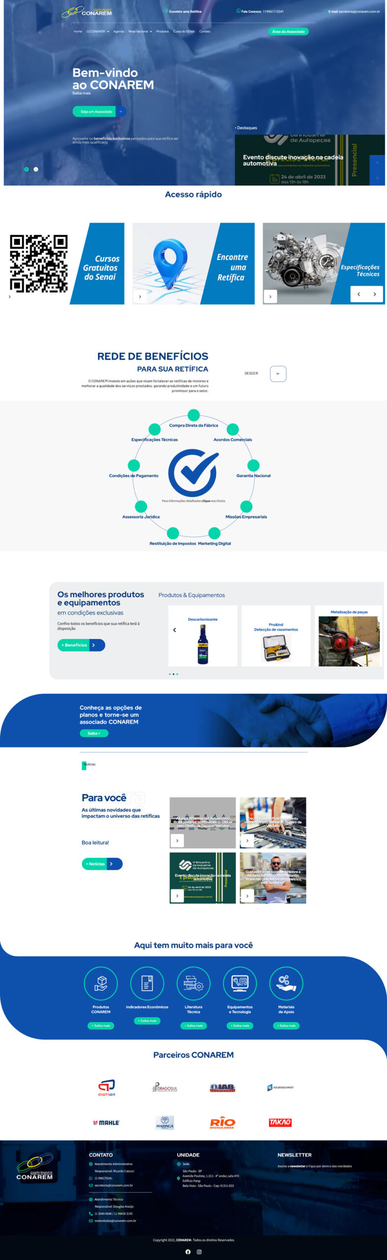 O layout desenvolvido exibe de forma mais rápida todas as funcionalidades do site, demonstrando de forma dinâmica os benefícios que só CONAREM é capaz de oferece para os retificadores.